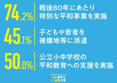 - 戦後80年にあたり特別の平和事業を行った自治体は46自治体です。