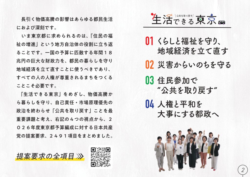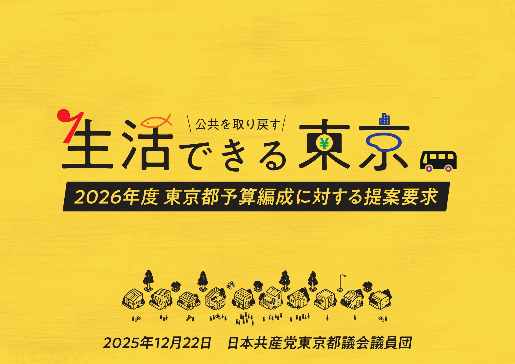 2026年度東京都予算編成に対する提案要求 日本共産党都議団は、12月22日、小池百合子知事に2026年度東京都予算編成に対する提案要求を提出しました。 2026年度東京都予算編成に対する提案要求(全項目・PDF) 2026年度東京都予算編成に対する提案要求のポイント(PDF) 予算
