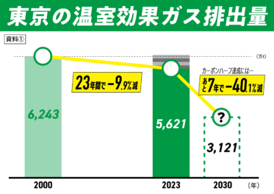 これは、都の予算案概要に出てくる東京の温室効果ガス排出量のグラフを分かりやすくしたものであります。