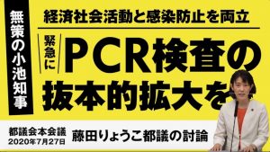 小池知事は、5月末にようやく1日1万件の検査能力を整備する目標を掲げましたが、2カ月たつのにいまだ目標達成の見通しはありません。世界各国で、日本のようにPCR検査に消極的な国は、ひとつもないと言われています。