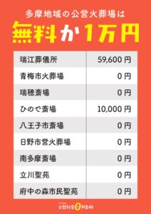 多摩地域の公営火葬場の火葬料は軒並み無料か、1万円です。八王子市は「受益者負担の適正化に関する基本方針」(2017年3月策定/2024年6月改訂)で、「公の施設は、住民福祉の増進を目的とし、市民の誰もが利用する機会を有しているため、全ての経費を利用者の負担とすることは適当ではないと考えます。」として、「斎場(火葬室)」の「受益者負担割合」を 「大半の市民が必要とし、民間では提供が困難な施設-0%」に整理し、実施しています(別紙資料9)。また私たちが行った公営火葬場への聞き取りでは、「火葬料は、どうしても必ず、一生に一度は通るので、組織市にそれぞれの負担金を負担してもらっている」といった声も寄せられました。